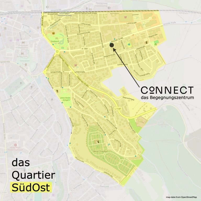 Das Quartiersprojekt der Stadt Schorndorf und der Süddeutschen Gemeinschaft Schorndorf e.V. schafft mit dem neuen Begegnungszentrum CONNECT einen Ort, an dem sich Menschen aus dem Quartier SüdOst treffen, austauschen und gemeinsam Projekte umsetzen können.