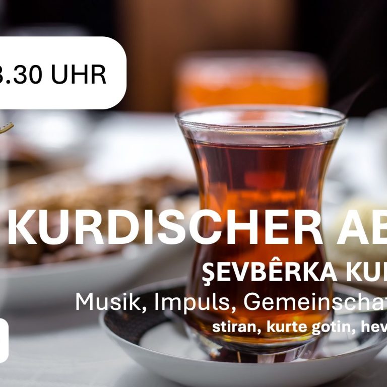 Am Freitag, 27. März, findet ab 18.30 Uhr ein Kurdischer Abend im CONNECT statt. Mit Musik, Essen, einem kurzen Impuls zur Gesprächsinspiration und vor allem Musik mit Rezan Shekho und der Saz soll der Abend Brücken schlagen zwischen Menschen aus Schorndorf – ganz gleich ob mit oder ohne kurdische Wurzeln.